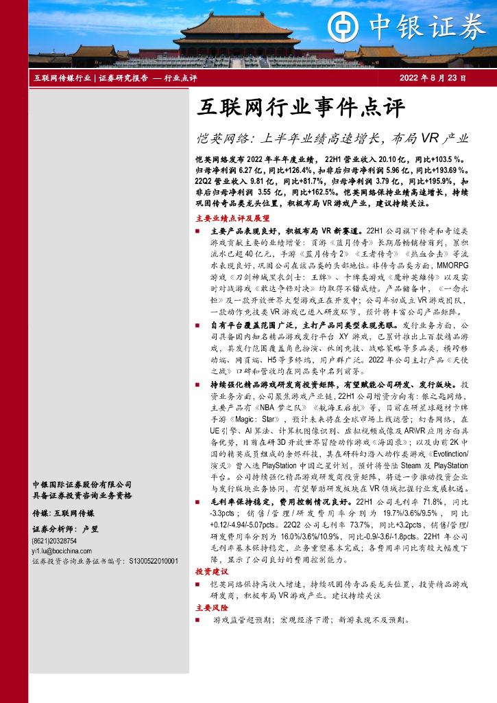 中银证券:互联网行业事件点评:恺英网络:上半年业绩高速增长,布局VR产业.pdf