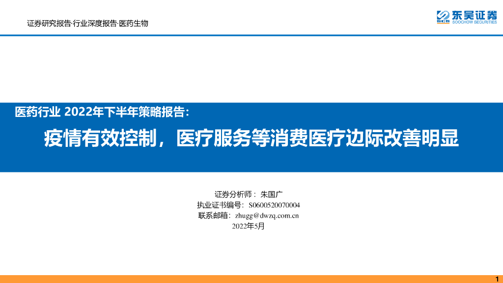 东吴证券:医药行业2022年下半年策略报告:疫情有效控制,医疗服务等消费医疗边际改善明显.pdf