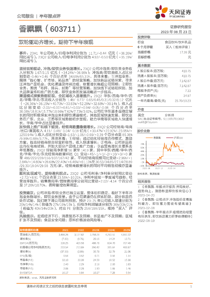 天风证券:香飘飘(603711)-双轮驱动齐增长,期待下半年表现.pdf