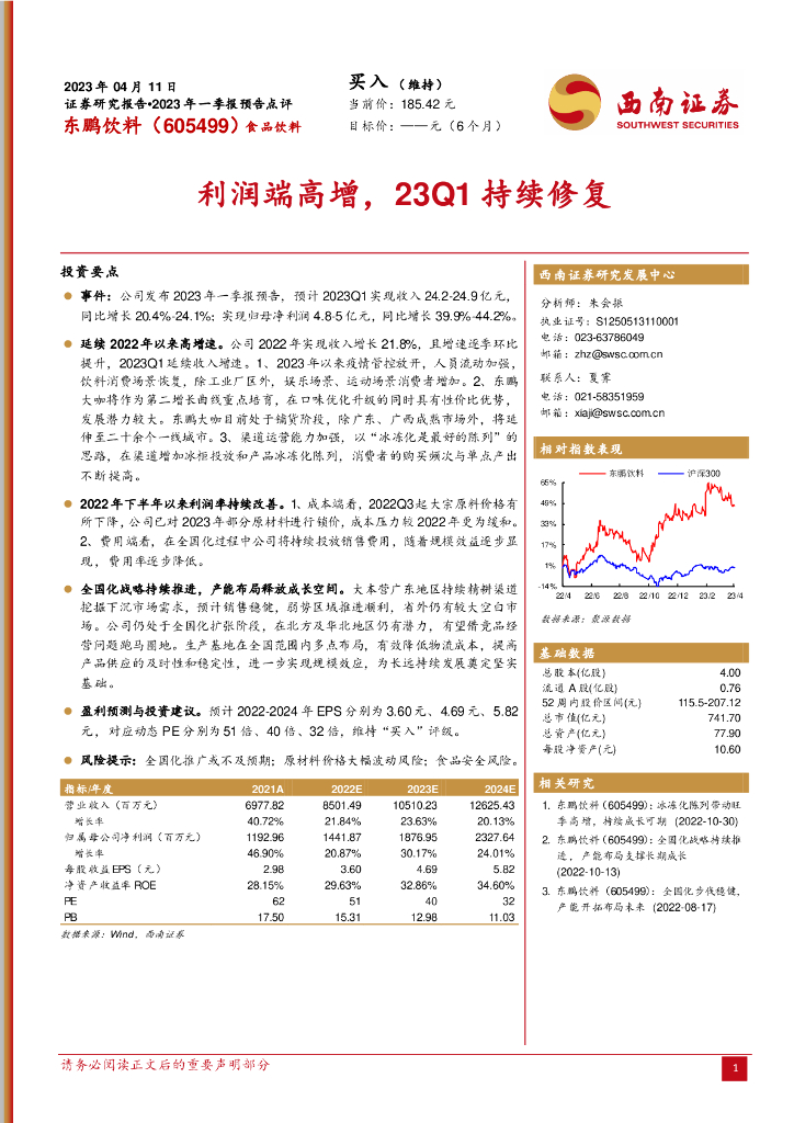西南证券:东鹏饮料(605499)-利润端高增,23Q1持续修复.pdf