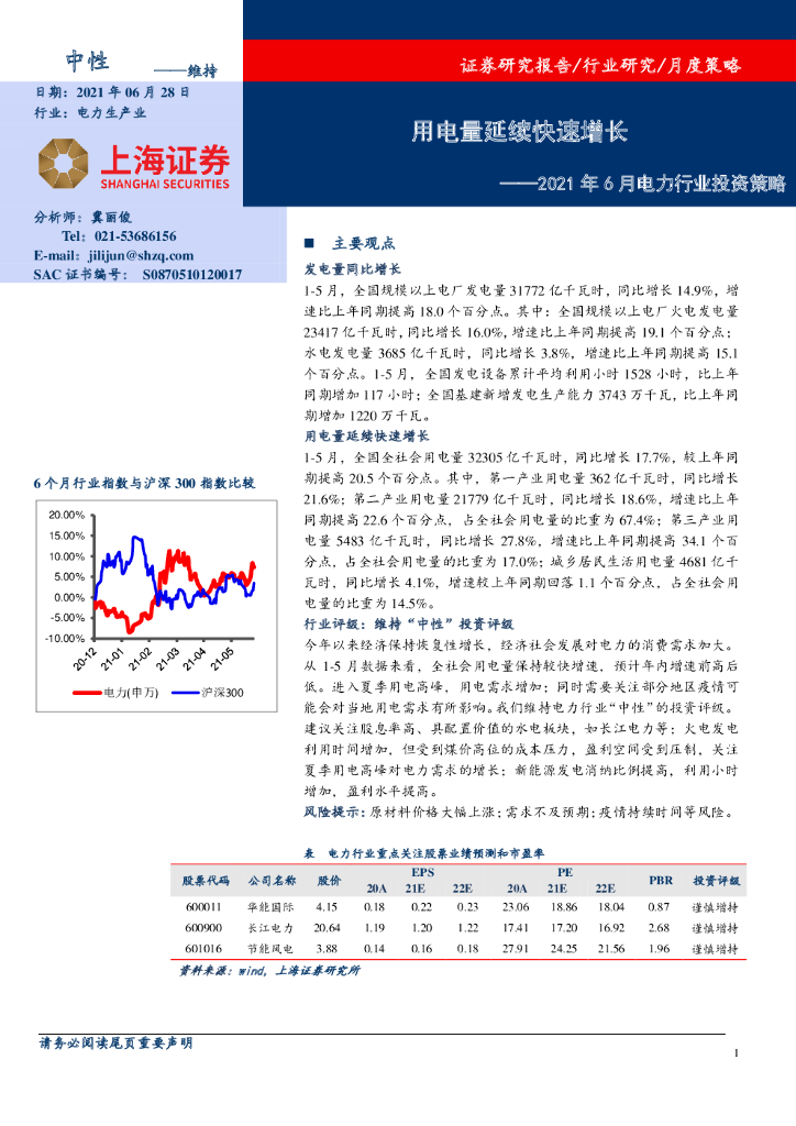 上海证券:2021年6月电力行业投资策略:用电量延续快速增长.pdf