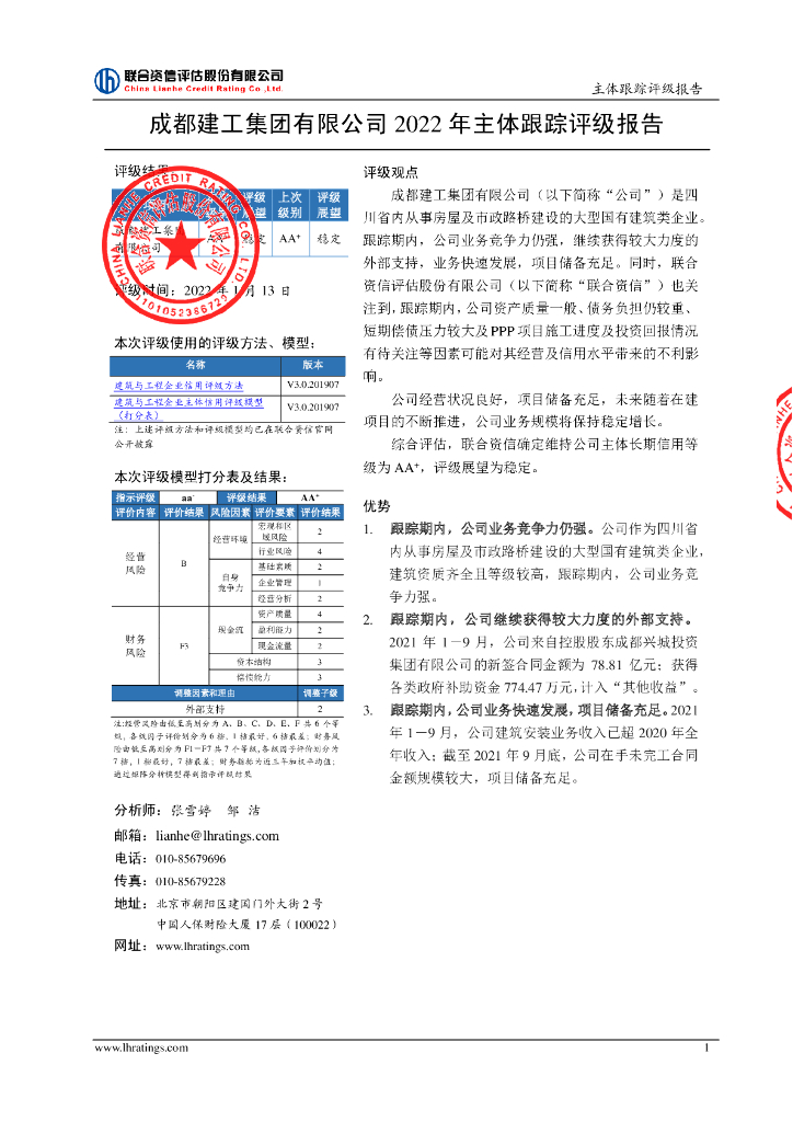 联合资信:成都建工集团有限公司主体评级报告及跟踪评级安排.pdf