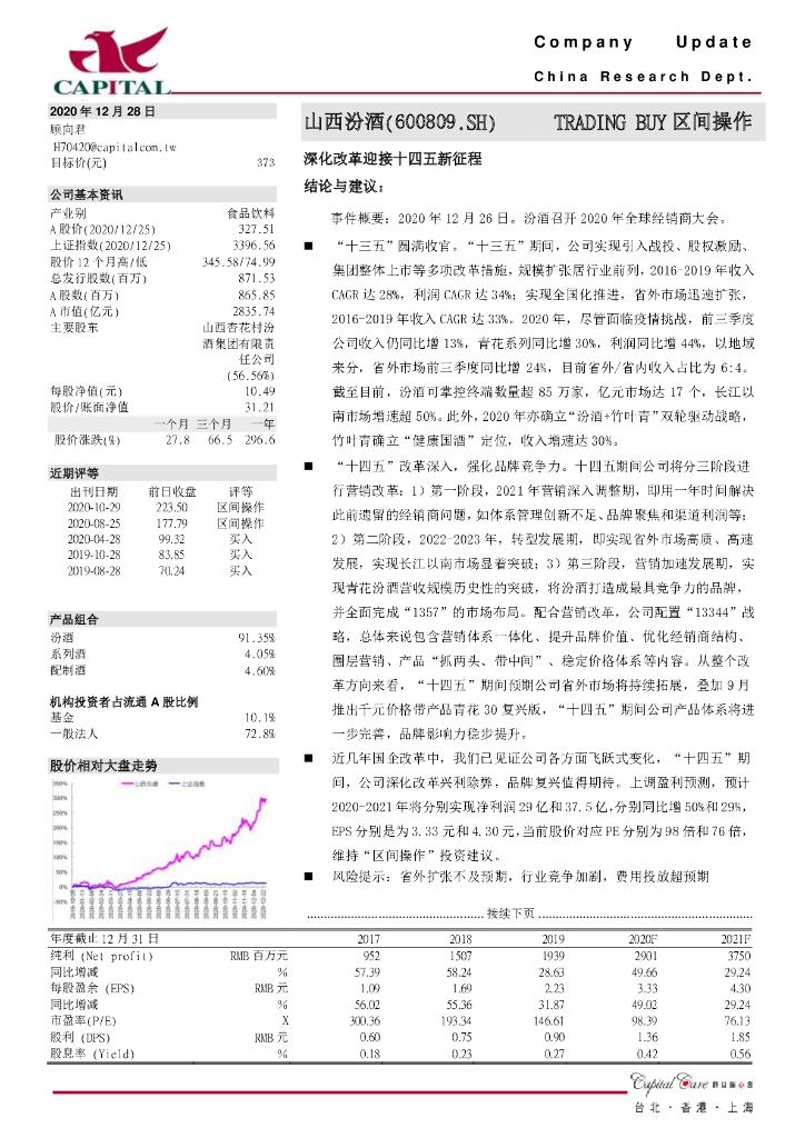 群益证券:山西汾酒(600809)-深化改革迎接十四五新征程.pdf