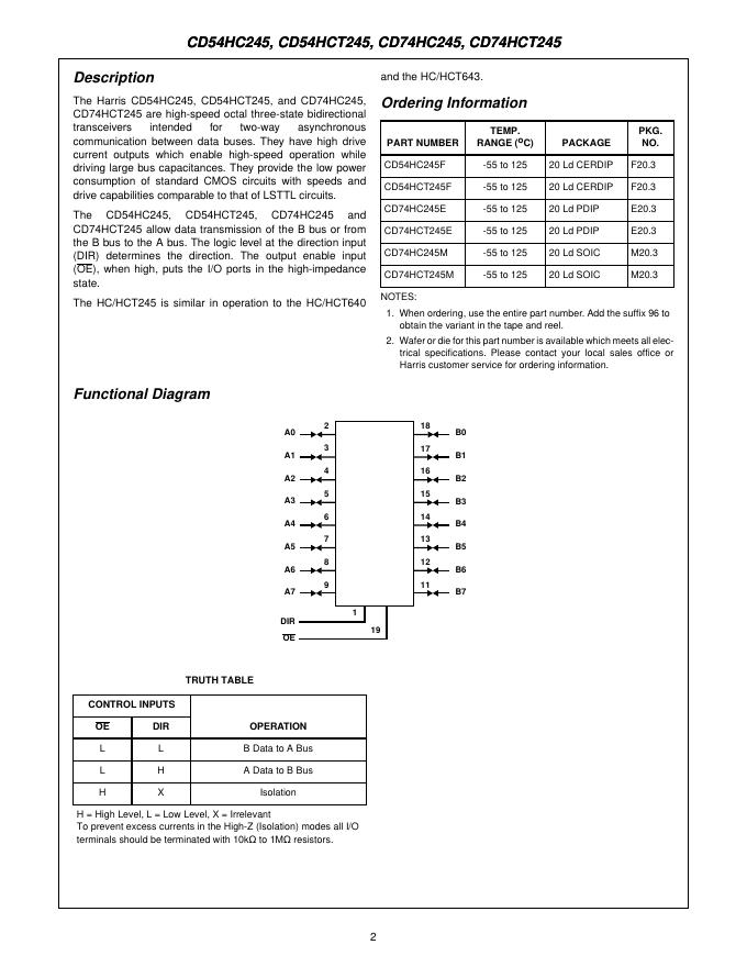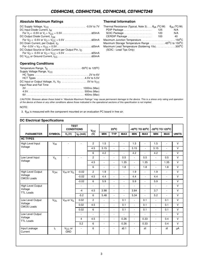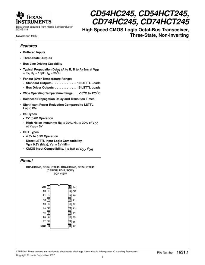 TEXAS INSTRUMENTS CD54HC245, CD54HCT245, CD74HC245, CD74HCT245 数据手册.pdf