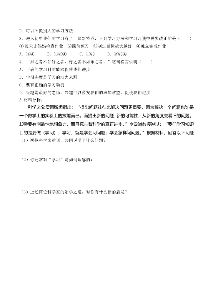 七年级上册 初中道德与法治第2课时 享受学习(1).doc