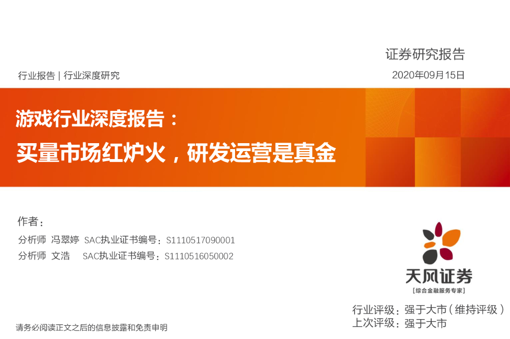 天风证券:游戏行业深度报告:买量市场红炉火,研发运营是真金.pdf