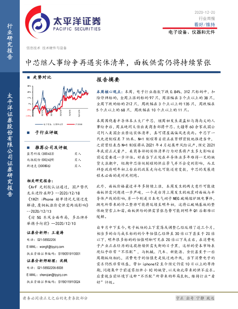 太平洋证券:电子设备、仪器和元件行业周报:中芯继人事纷争再遇实体清单,面板供需仍将持续紧张.pdf