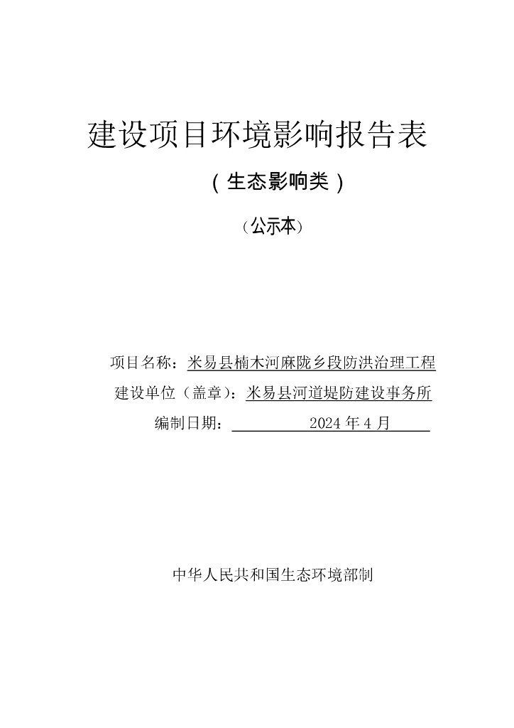米易县楠木河麻陇乡段防洪治理工程建设项目环境影响报告表 (生态影响类)(公示本).pdf