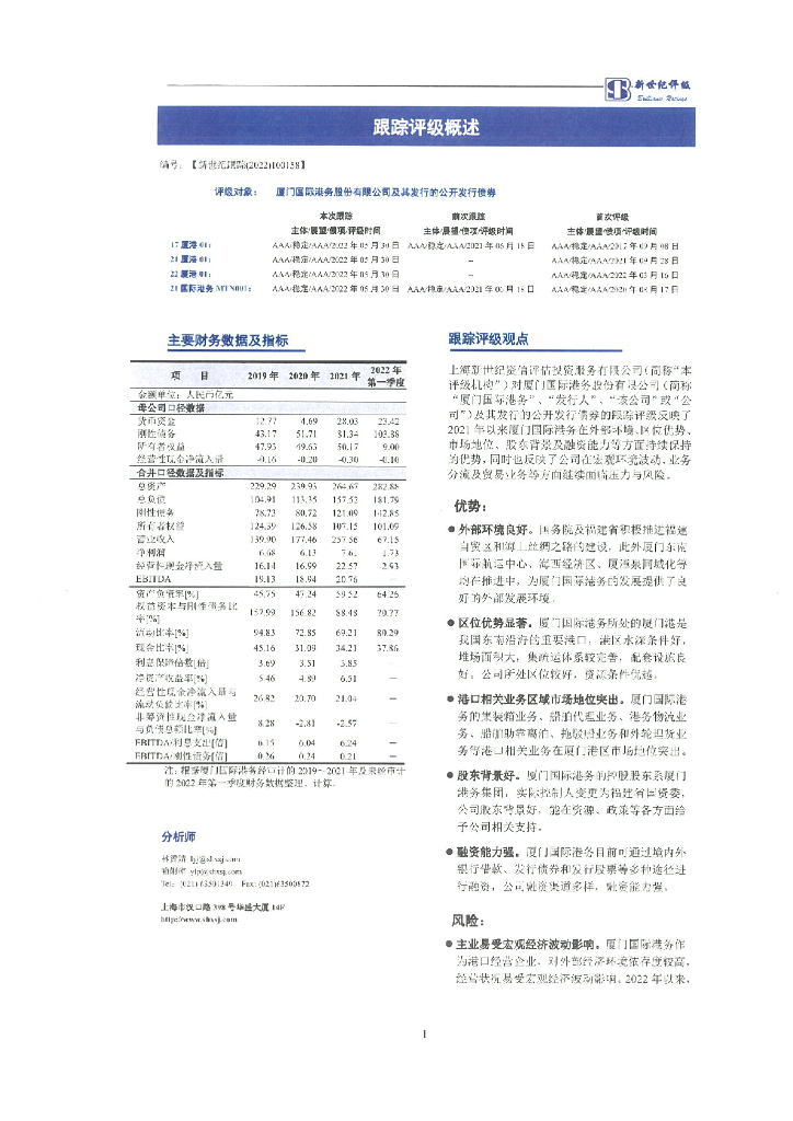 新世纪:厦门国际港务股份有限公司及其发行的公开发行债券跟踪评级报告.pdf