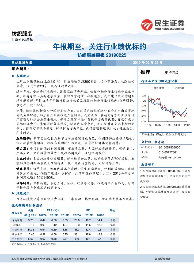 民生证券:纺织服装周报:年报期至,关注行业绩优标的.pdf