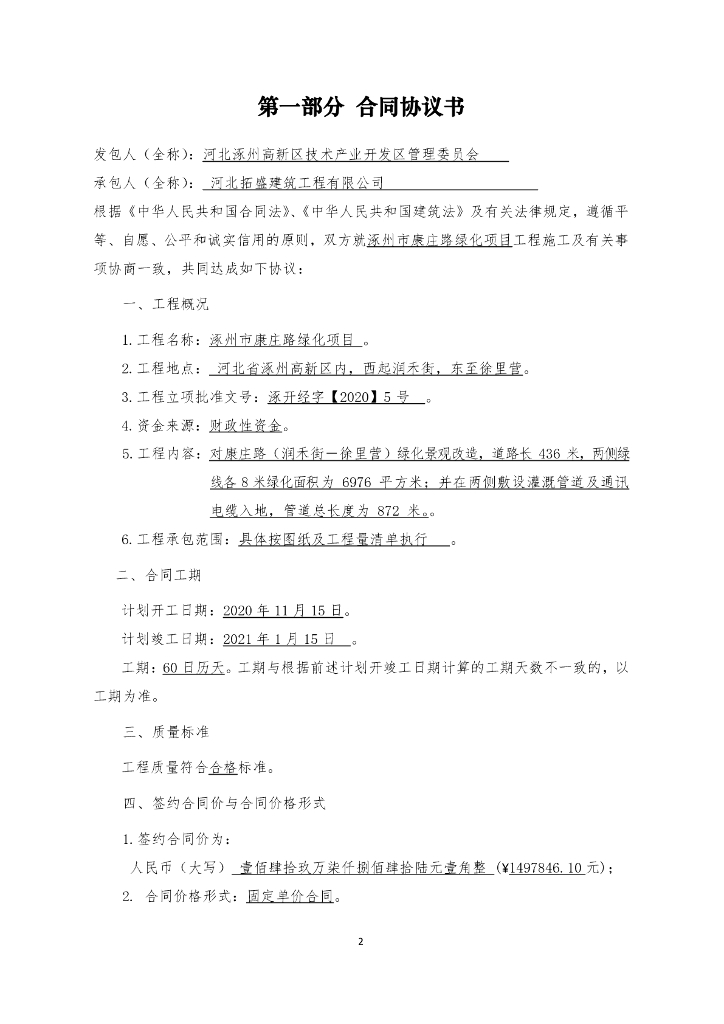 涿州市康庄路绿化项目园林绿化工程施工合同.pdf
