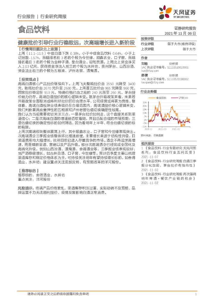 天风证券:食品饮料行业研究周报:健康批价引导行业行稳致远,次高端增长进入新阶段.pdf