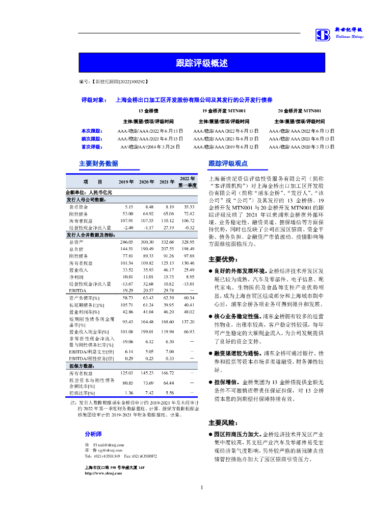 新世纪:上海金桥出口加工区开发股份有限公司及其发行的公开发行债券跟踪评级报告.pdf