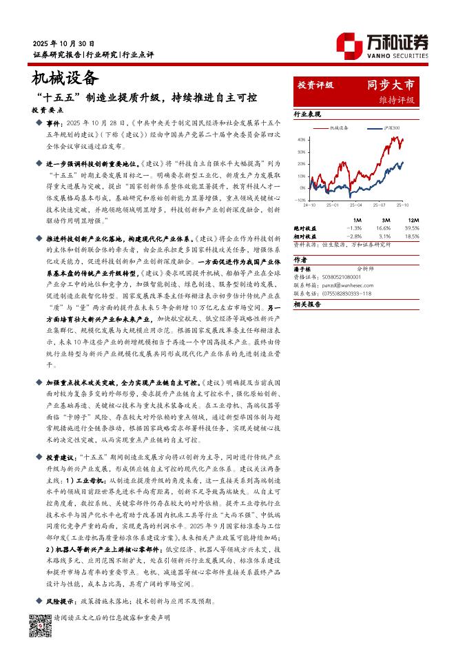 万和证券:机械设备:“十五五”制造业提质升级,持续推进自主可控.pdf