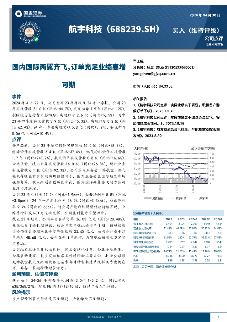 国金证券:航宇科技(688239)-国内国际两翼齐飞,订单充足业绩高增可期.pdf