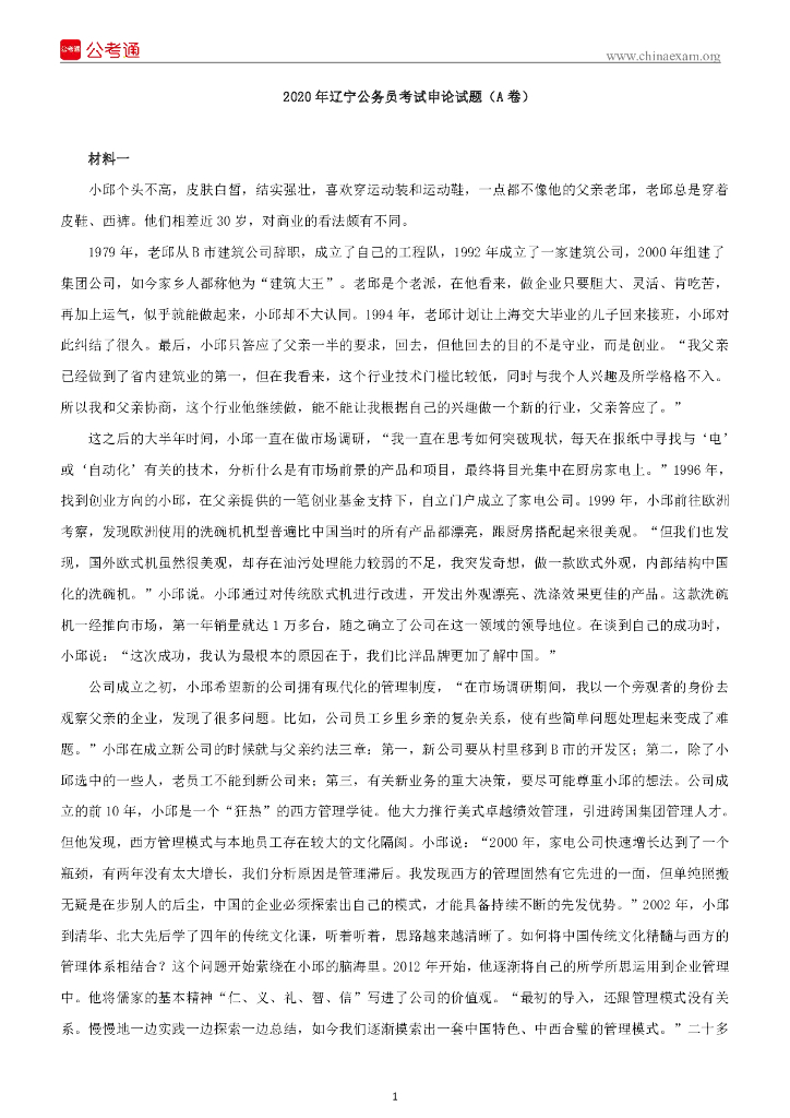 2020年辽宁公务员考试申论试题及参考答案(A卷).pdf