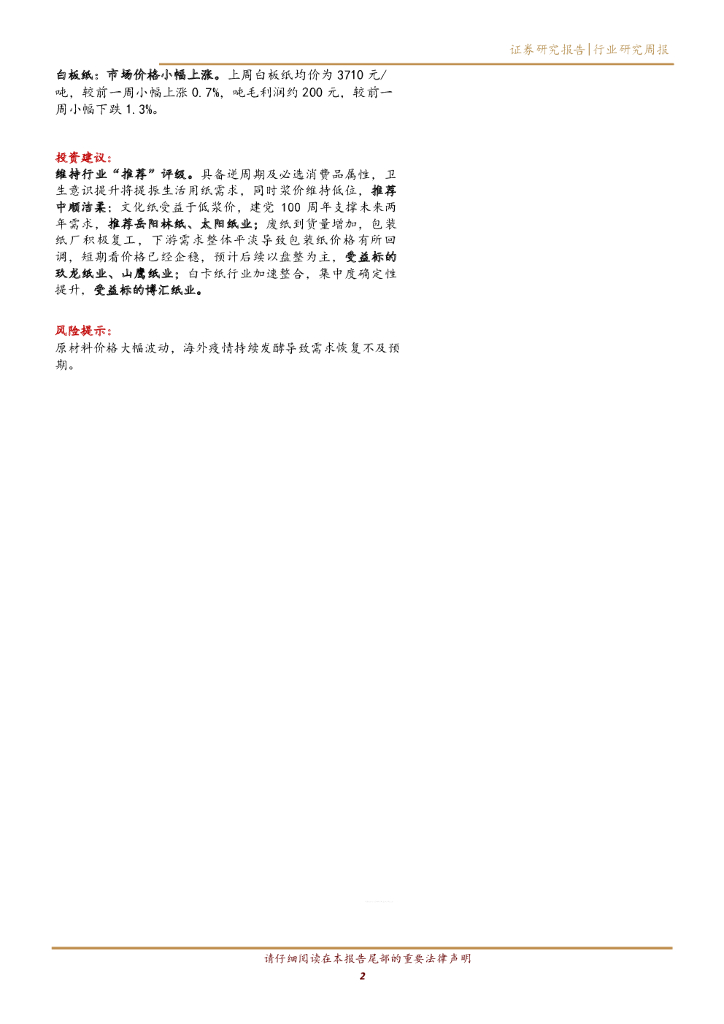 华西证券:造纸行业数据跟踪报告:浆价维持低位,文化纸&包装纸景气继续回升.pdf