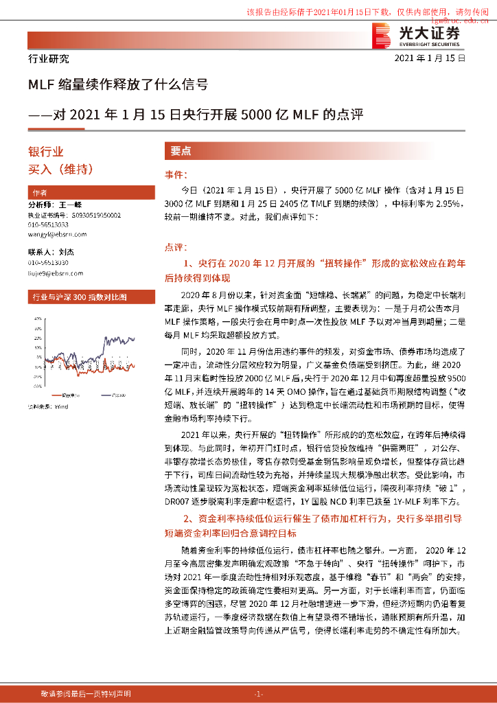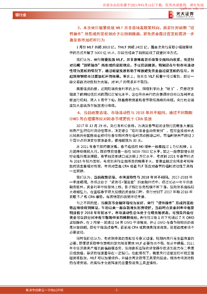 光大证券:银行业对2021年1月15日央行开展5000亿MLF的点评:MLF缩量续作释放放了什么信号分析.pdf