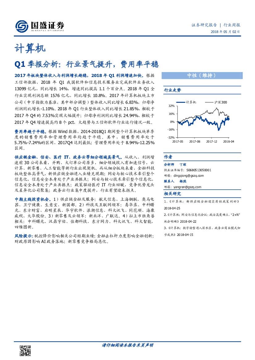 国盛证券:计算机行业周报:Q1季报分析:行业景气提升,费用率平稳.pdf