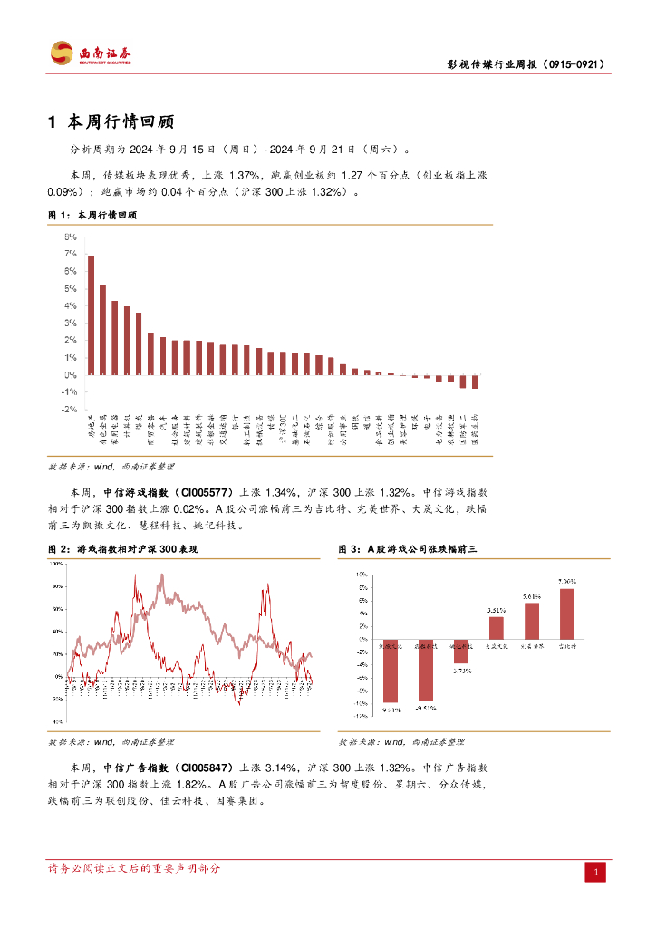 西南证券:影视传媒行业周报:Unity610月全球发布,腾讯推出游戏视频生成模型GameGen-O.pdf