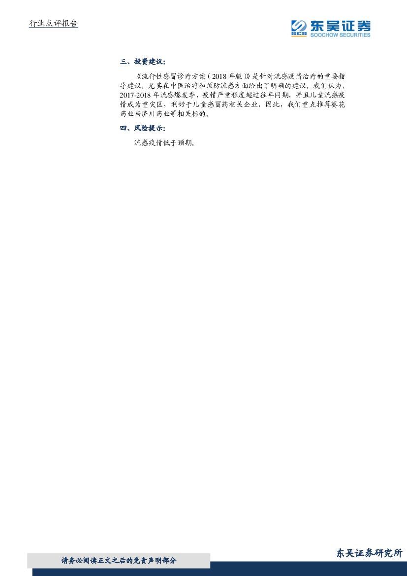 东吴证券:生物医药行业:《流行性感冒诊疗方案(2018年版)》出台,重点推荐葵花药业、济川药业.pdf