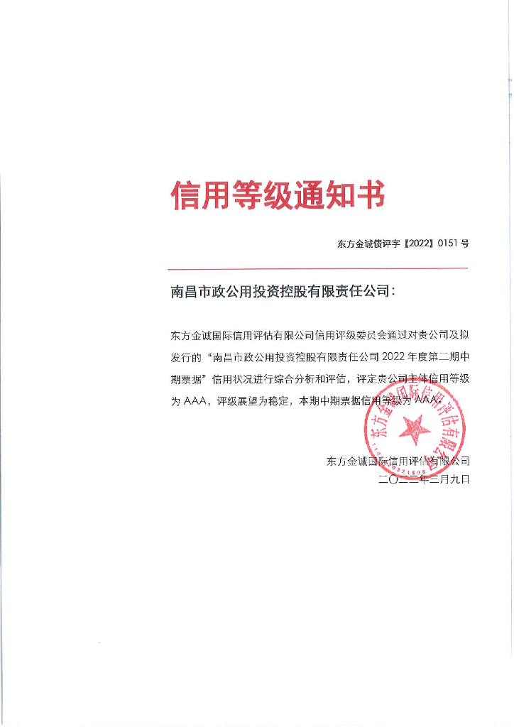 东方金诚:南昌市政公用投资控股有限责任公司2022年度第二期中期票据信用评级报告.pdf
