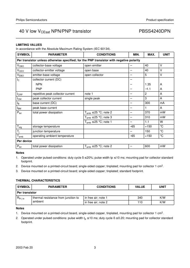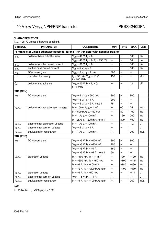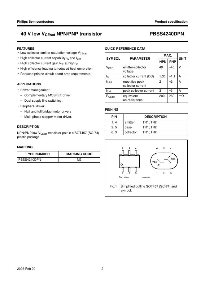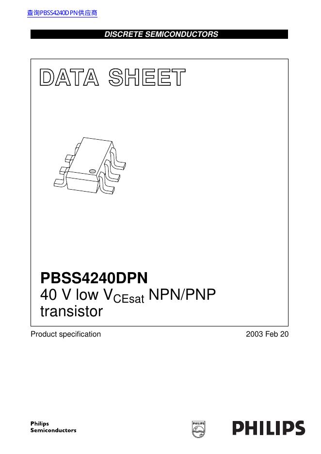 philips PBSS4240DPN 40 V low VCEsat NPN/PNP transistor 数据手册.pdf