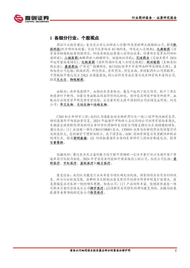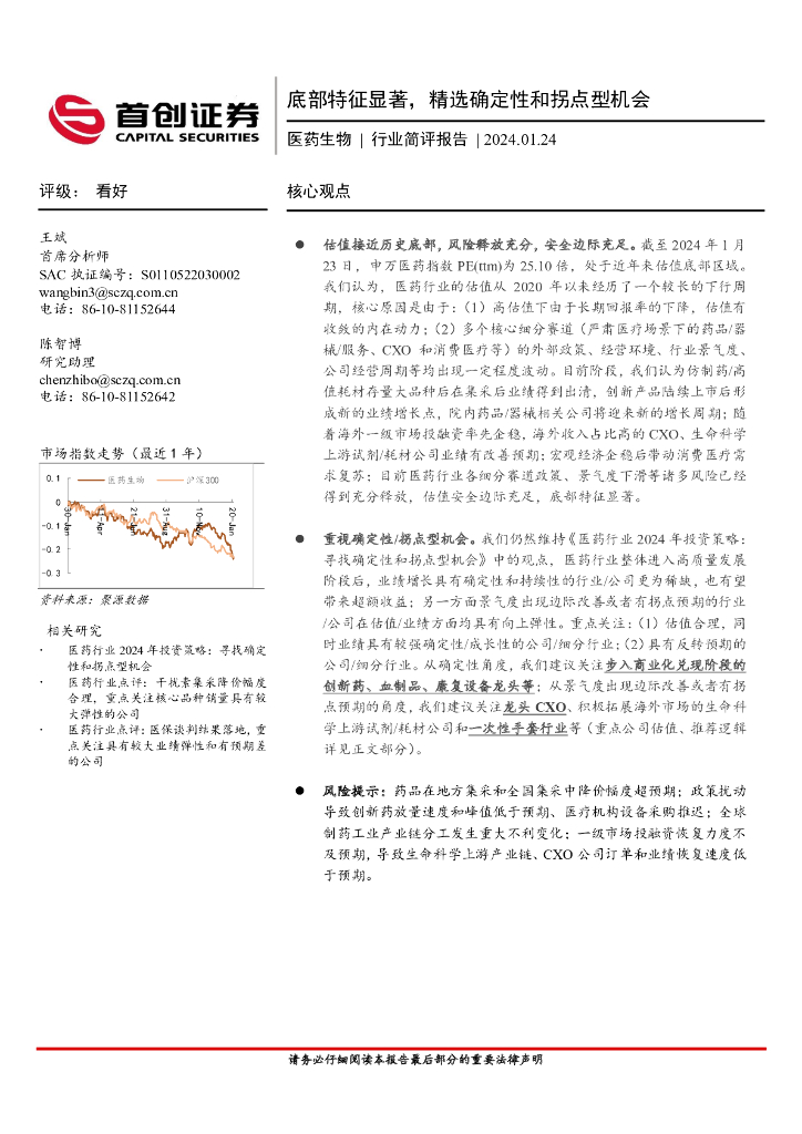 首创证券:医药生物行业简评报告:底部特征显著,精选确定性和拐点型机会.pdf