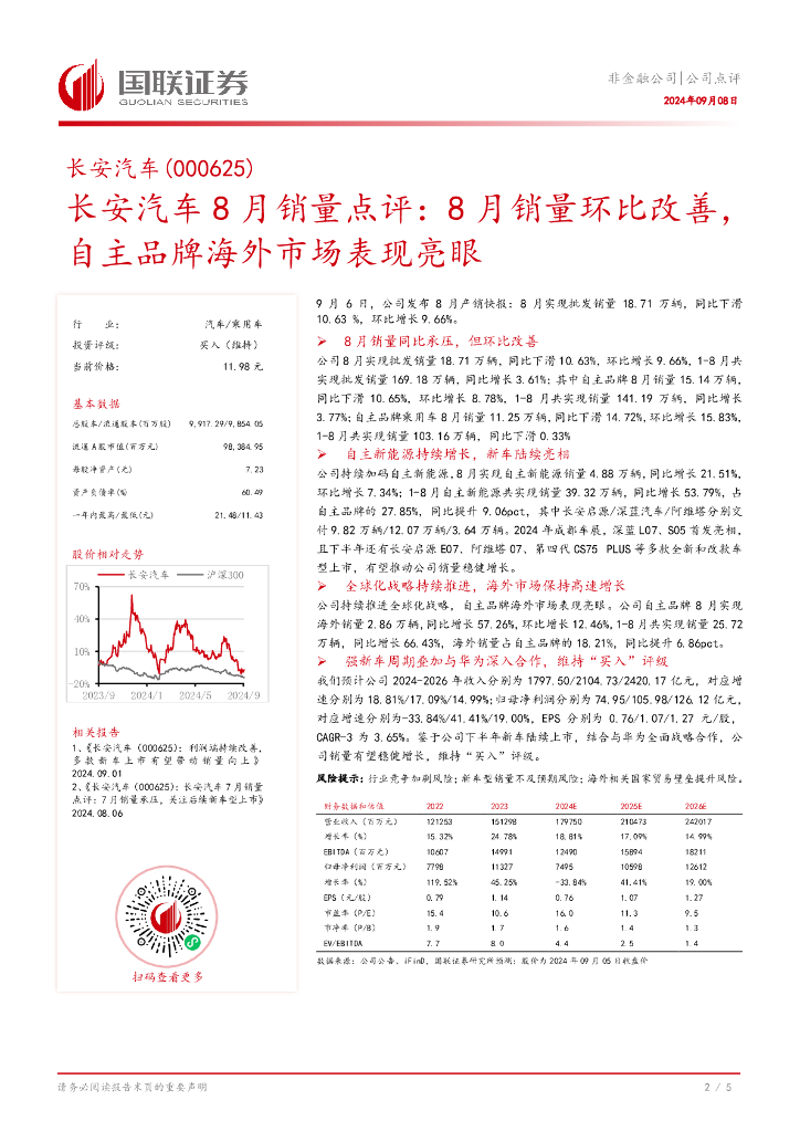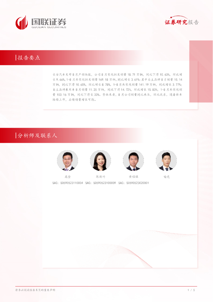 国联证券:长安汽车8月销量点评:8月销量环比改善,自主品牌海外市场表现亮眼.pdf