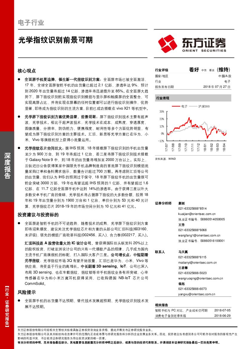 东方证券:电子行业深度报告:光学指纹识别前景可期.pdf