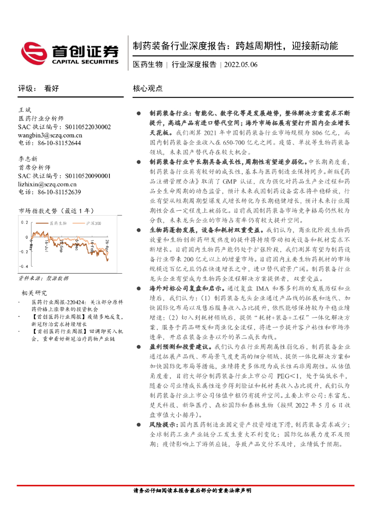首创证券:医药生物:制药装备行业深度报告:跨越周期性,迎接新动能.pdf