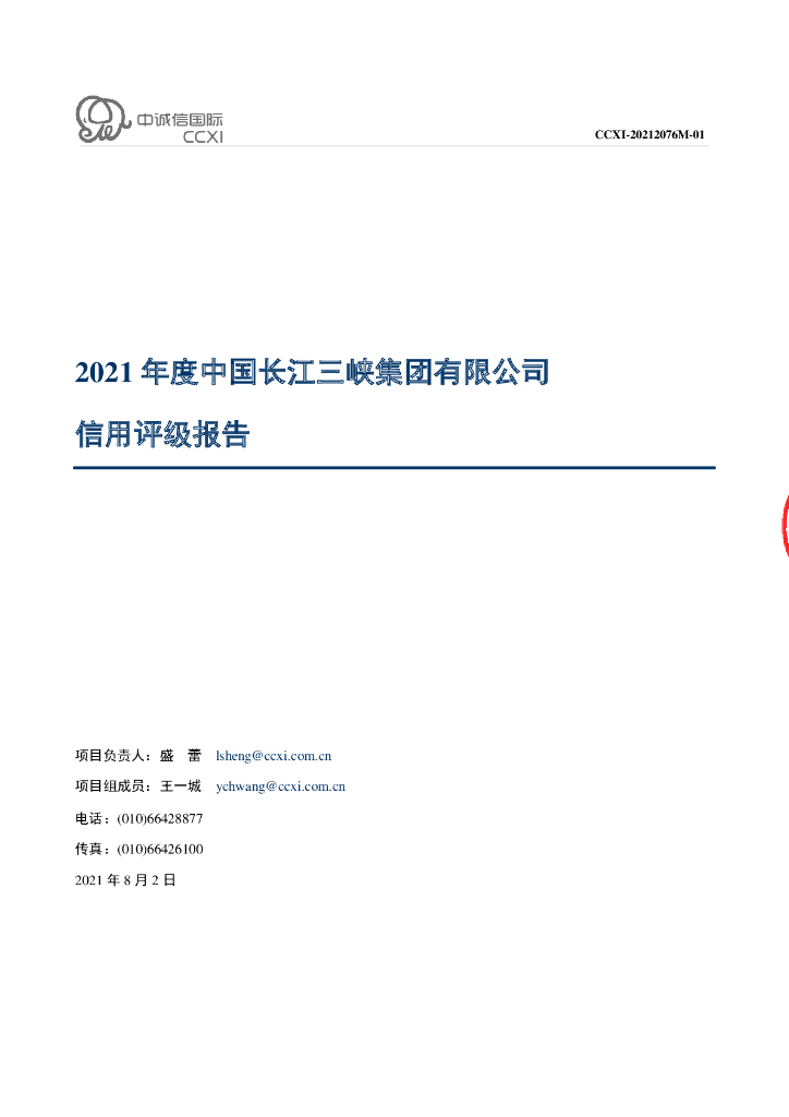 中诚信:2021年度中国长江三峡集团有限公司信用评级报告.pdf