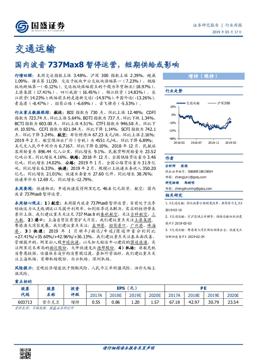 国盛证券:交通运输行业周报:国内波音737Max8暂停运营,短期供给或影响.pdf
