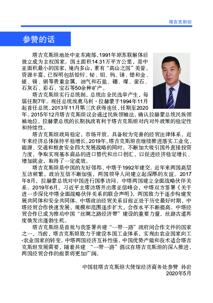 商务部:对外投资合作国别(地区)指南:塔吉克斯坦(2020年版).pdf