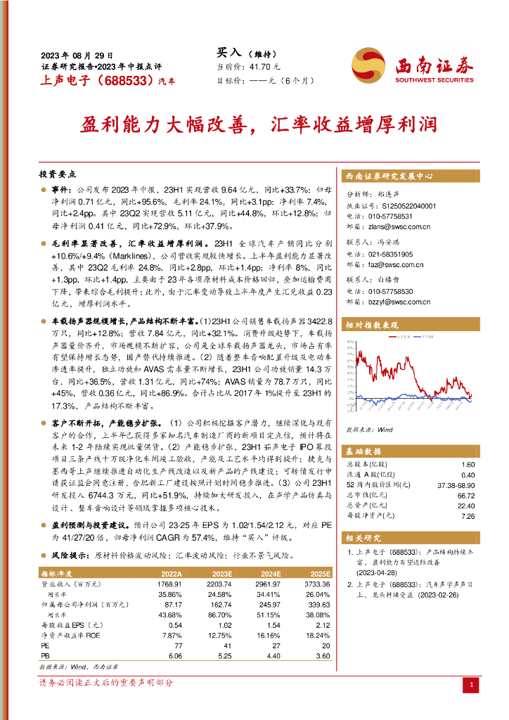 西南证券:上声电子(688533)-盈利能力大幅改善,汇率收益增厚利润.pdf