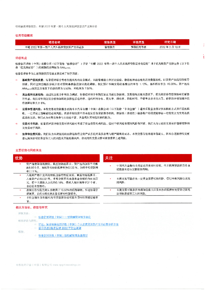标普信评:丰耀2022年第一期个人汽车抵押贷款资产支持证券信用评级报告-标普信评.pdf