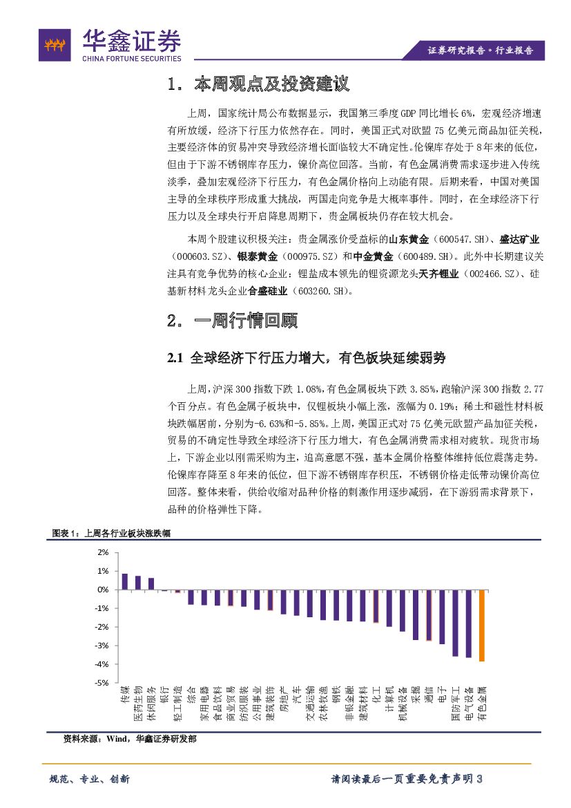华鑫证券:有色金属行业周报:宏观经济增速放缓,重点关注贵金属板块.pdf