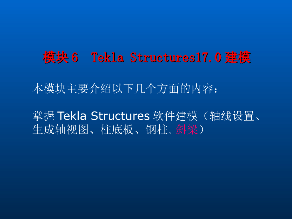 Tekla钢结构BIM软件教程模块6-Tekla建模(斜梁).ppt