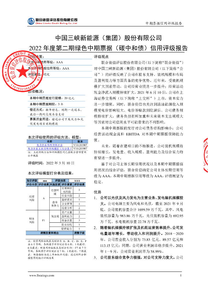 联合资信:中国三峡新能源(集团)股份有限公司2022年度第二期绿色中期票据(碳中和债)信用评级报告.pdf