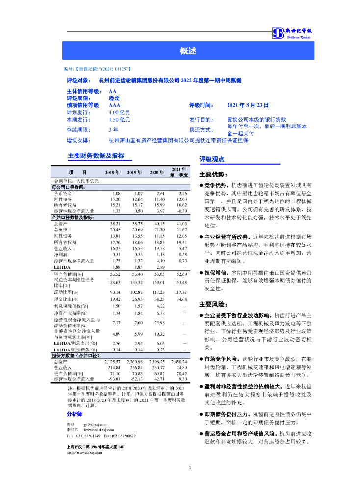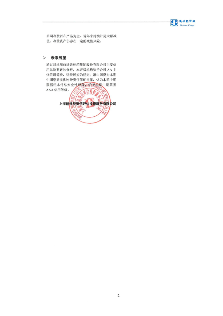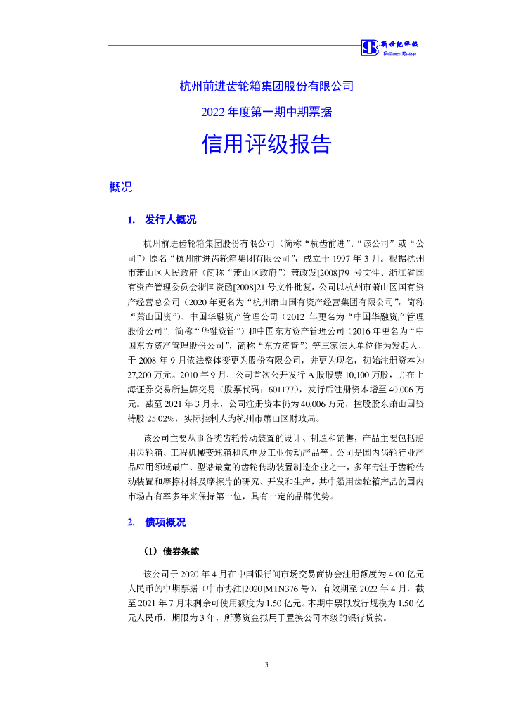 新世纪:杭州前进齿轮箱集团股份有限公司2022年度第一期中期票据信用评级报告.pdf
