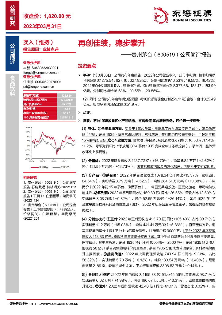东海证券:贵州茅台(600519)-公司简评报告:再创佳绩,稳步攀升.pdf
