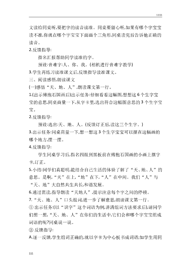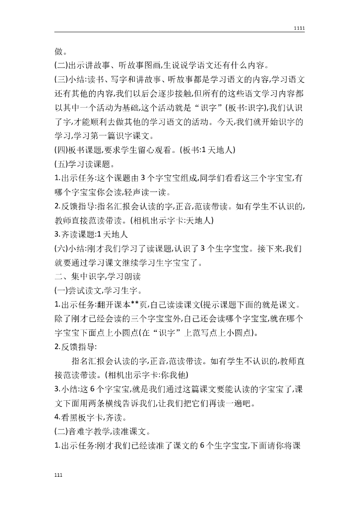 一年级语文(教案5)识字1 天地人教学设计.doc