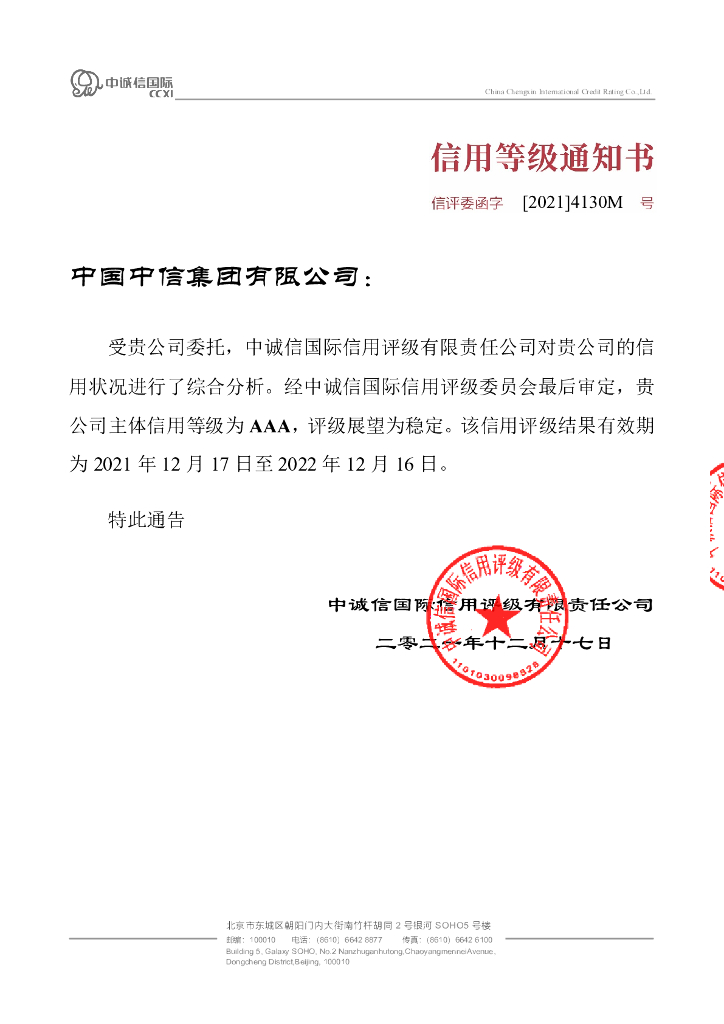 中诚信:中国中信集团有限公司主体信用评级报告及跟踪评级安排.pdf