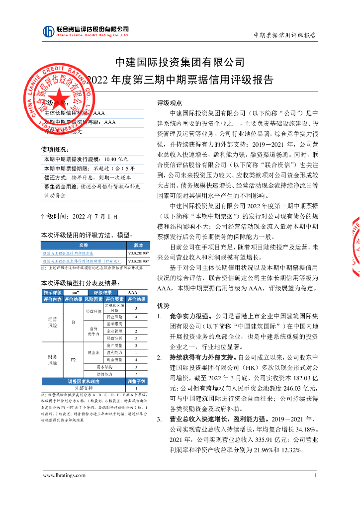 联合资信:中建国际投资集团有限公司2022年度第三期中期票据信用评级报告.pdf
