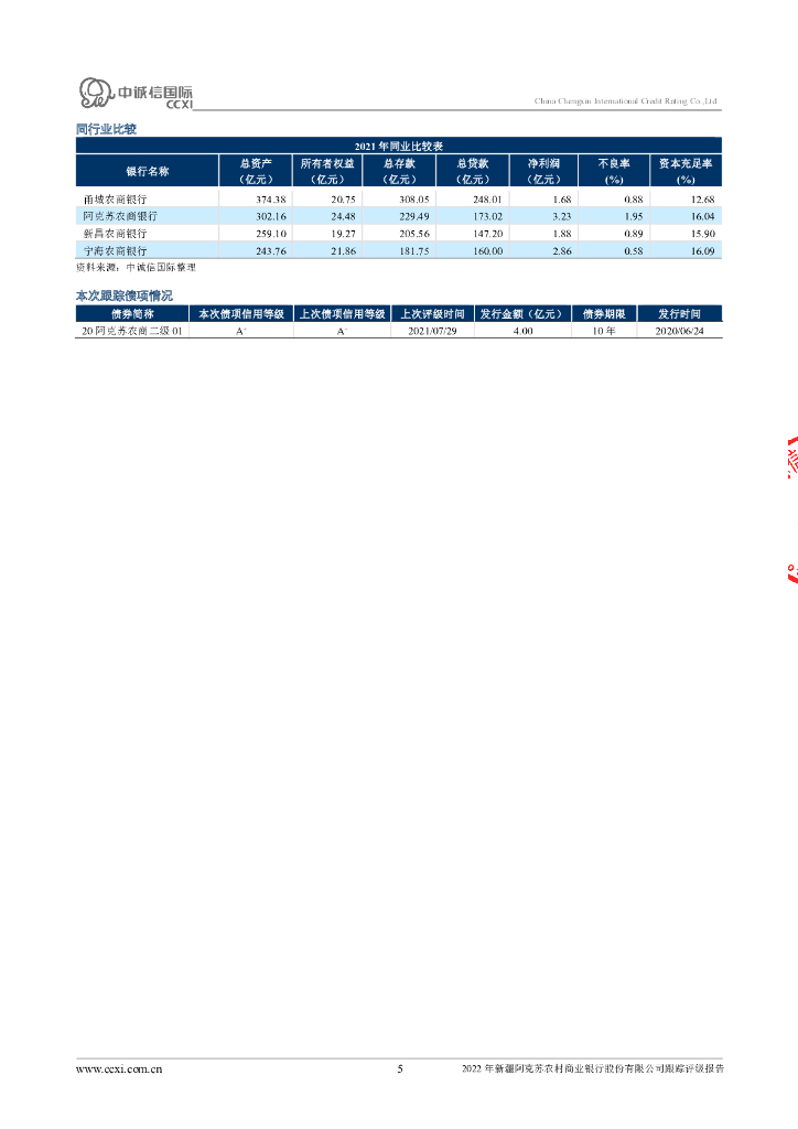 中诚信:2022年新疆阿克苏农村商业银行股份有限公司跟踪评级报告.pdf