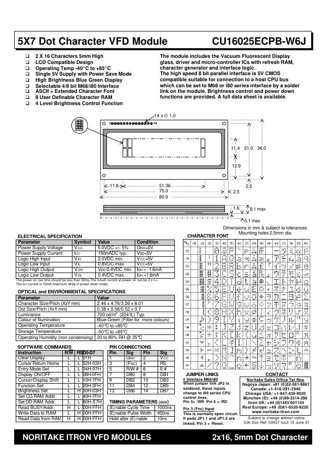 5X7 Dot Character VFD Module CU16025ECPB-W6J 数据手册.pdf