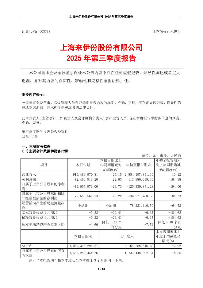 603777-来伊份:上海来伊份股份有限公司2025年第三季度报告.pdf