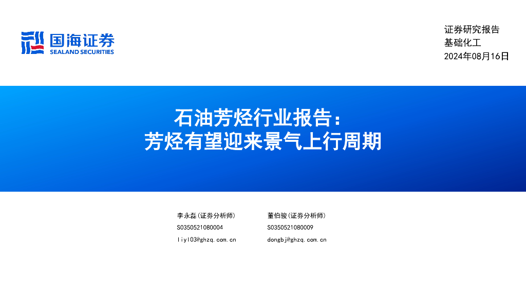 国海证券:石油芳烃行业报告:芳烃有望迎来景气上行周期.pdf