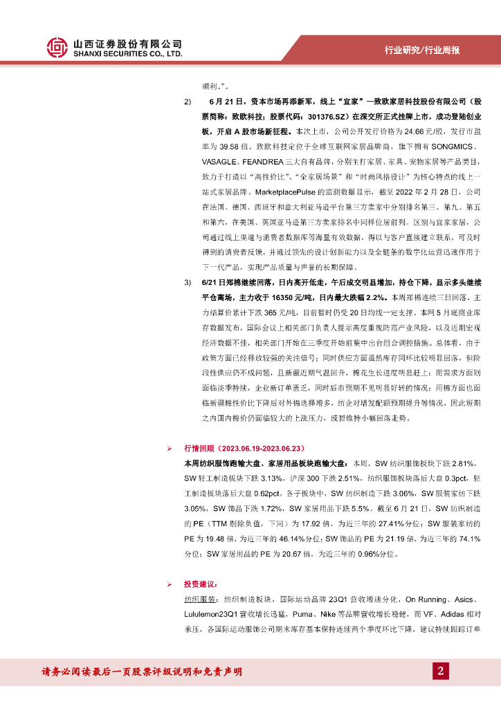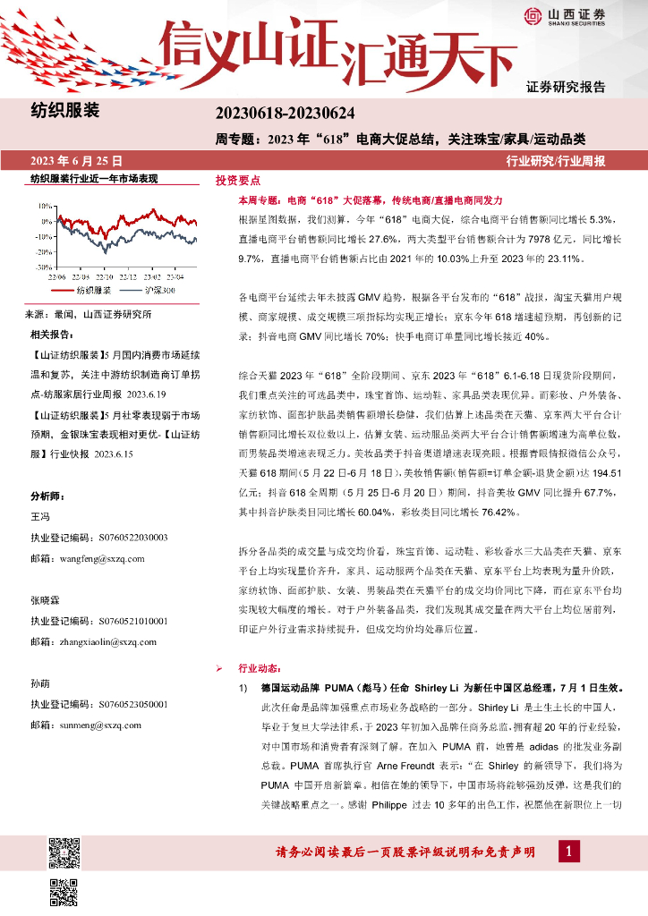 山西证券:纺织服装周专题:2023年“618”电商大促总结,关注珠宝/家具/运动品类.pdf
