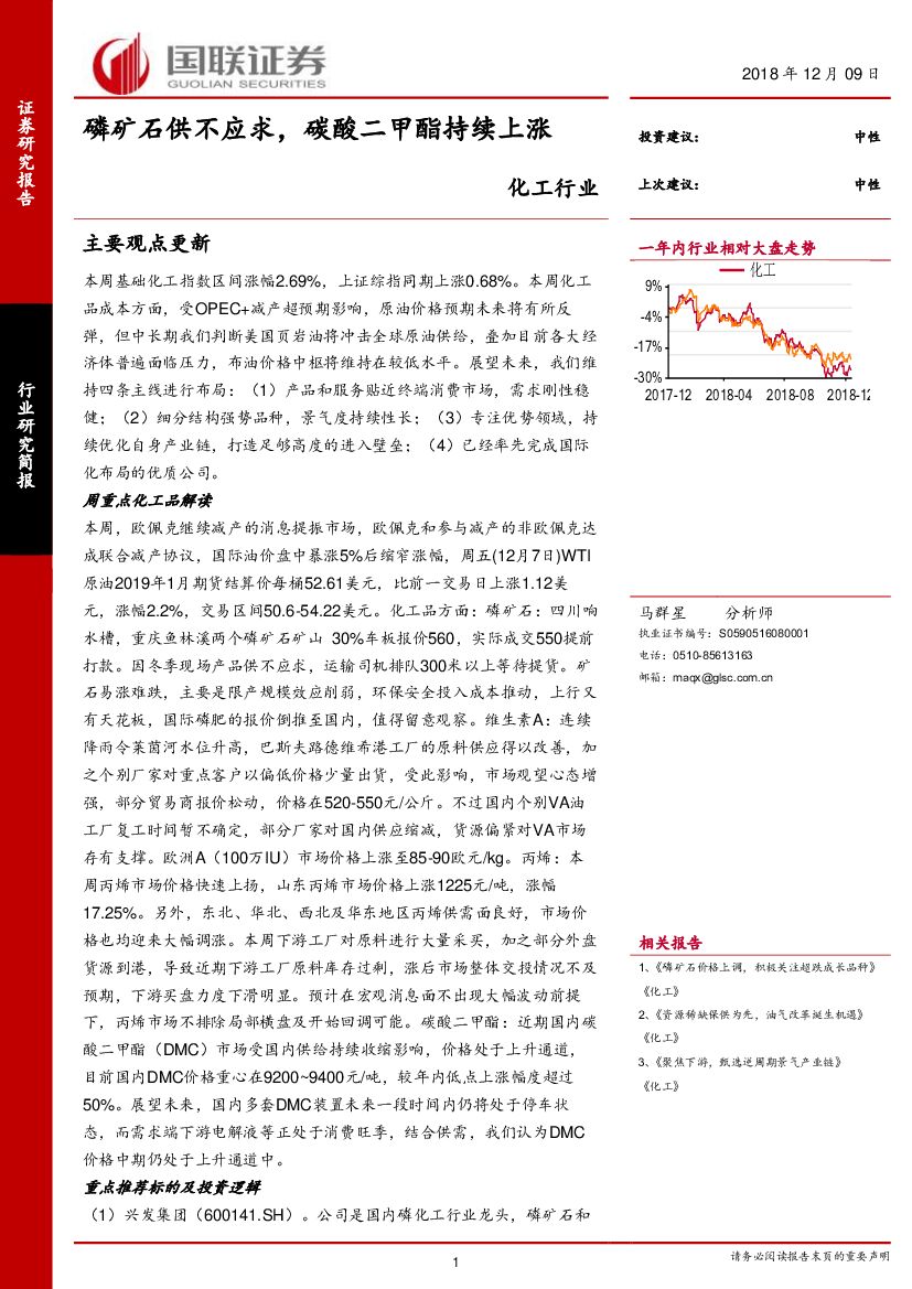 国联证券:化工行业:磷矿石供不应求,碳酸二甲酯持续上涨.pdf